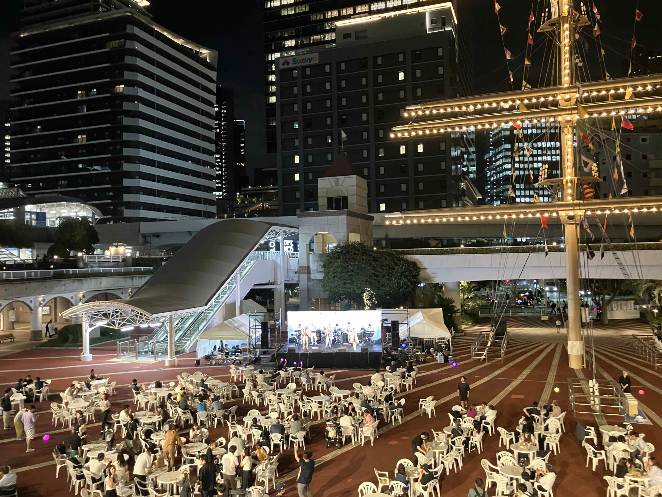 竹芝客船ターミナルでは食とライブのイベント、東京ポートシティ竹芝では盆踊りイベントの会場設営と運営のサポートを行いました。